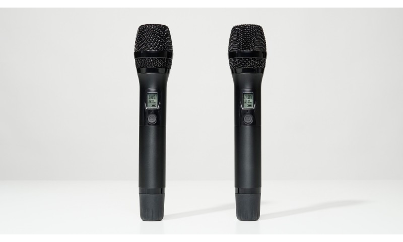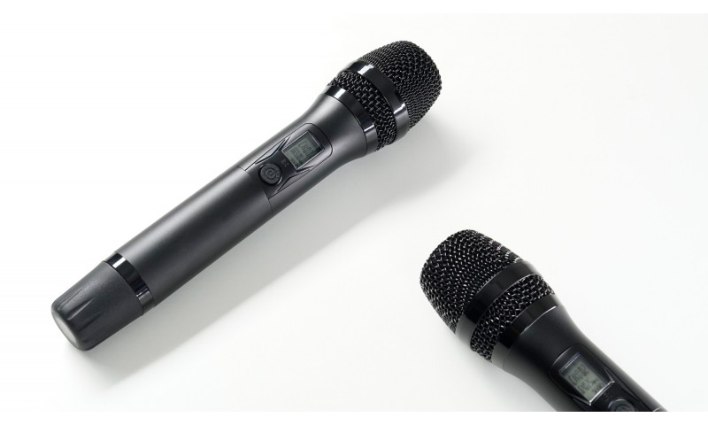 Bộ sản phẩm còn có 2 tay micro không dây dBacoustic nhỏ gọn, làm bằng hợp kim phủ nano chống trầy xước, chống bám vân, tạo cảm giác thoải mái cho người dùng khi cầm nắm. Trên thân micro không dây này cũng được trang bị 1 màn hình LCD nhỏ hiển thị tần số, dung lượng pin và 1 nút nguồn mềm, rất dễ thao tác.