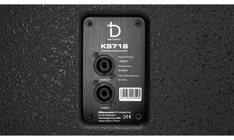 DBacoustic KS718 có cấu trúc vững chắc, với vỏ thùng loa làm từ gỗ ép cao cấp, gia công kỹ lưỡng để chống cong vênh, đảm bảo tính ổn định khi hoạt động trong thời gian dài. Bề mặt được phủ lớp sơn sần đen chống trầy, chống nước, tăng cường độ bền và giữ vẻ ngoài sang trọng cho thiết bị.